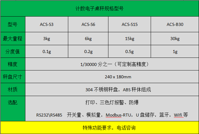 ACS系列計(jì)數(shù)電子桌秤是一款專為五金、工廠、食品加工等工業(yè)場合設(shè)計(jì)的高精度小量程產(chǎn)品。秤體工業(yè)采用不銹鋼秤盤與整機(jī)碳鋼結(jié)構(gòu)、高清大屏幕清晰按鍵,三窗口LCD液晶顯示